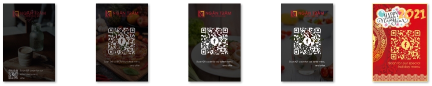 Từ các mã QR đã được thiết kế và tùy biến riêng, tải về để sử dụng thiết kế cho các menu để bàn, để quầy, dán trước cửa quán, chia sẻ trên mạng xã hội...